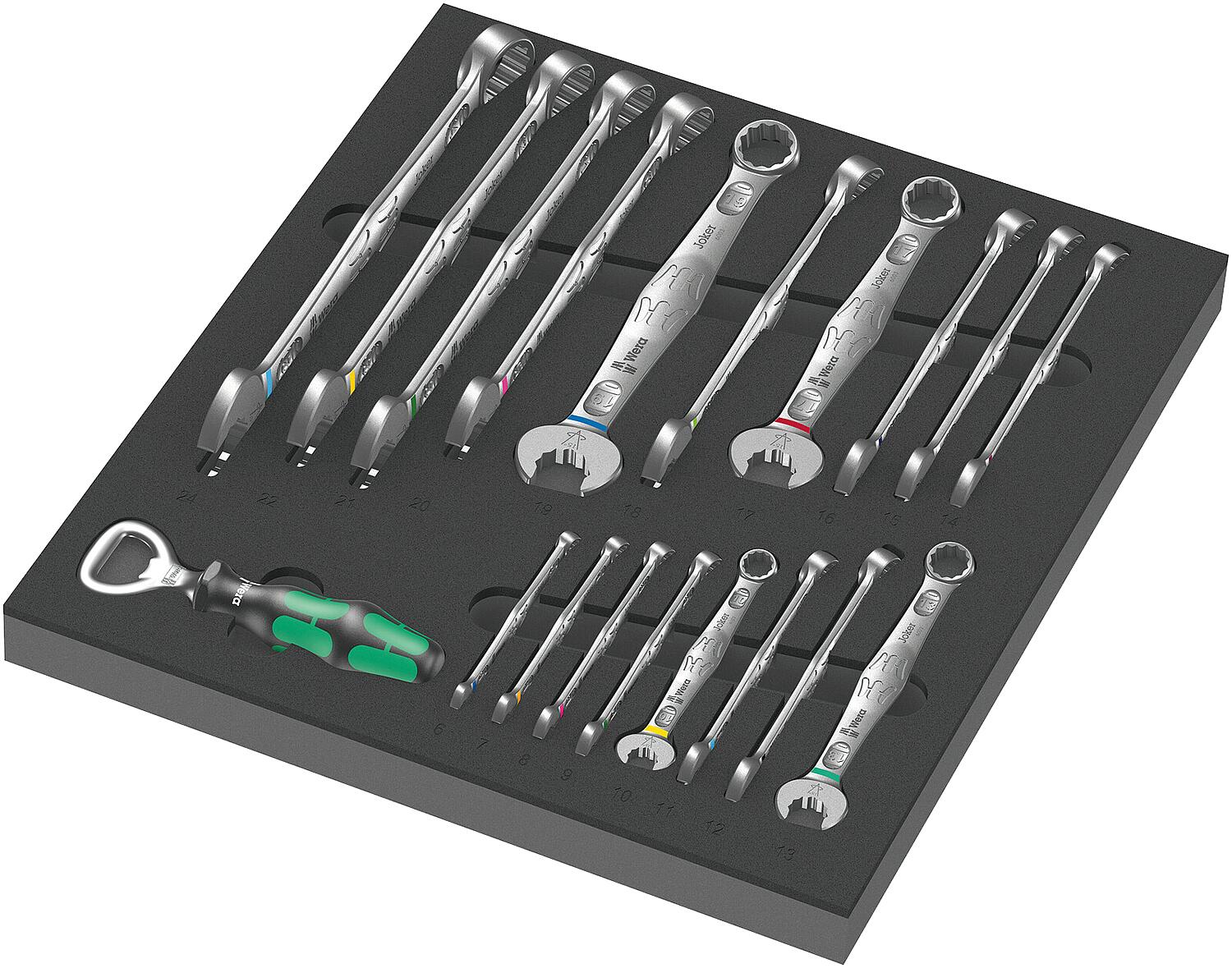 WERA Joker 6003 19-piece open-end/ring wrench set in foam module