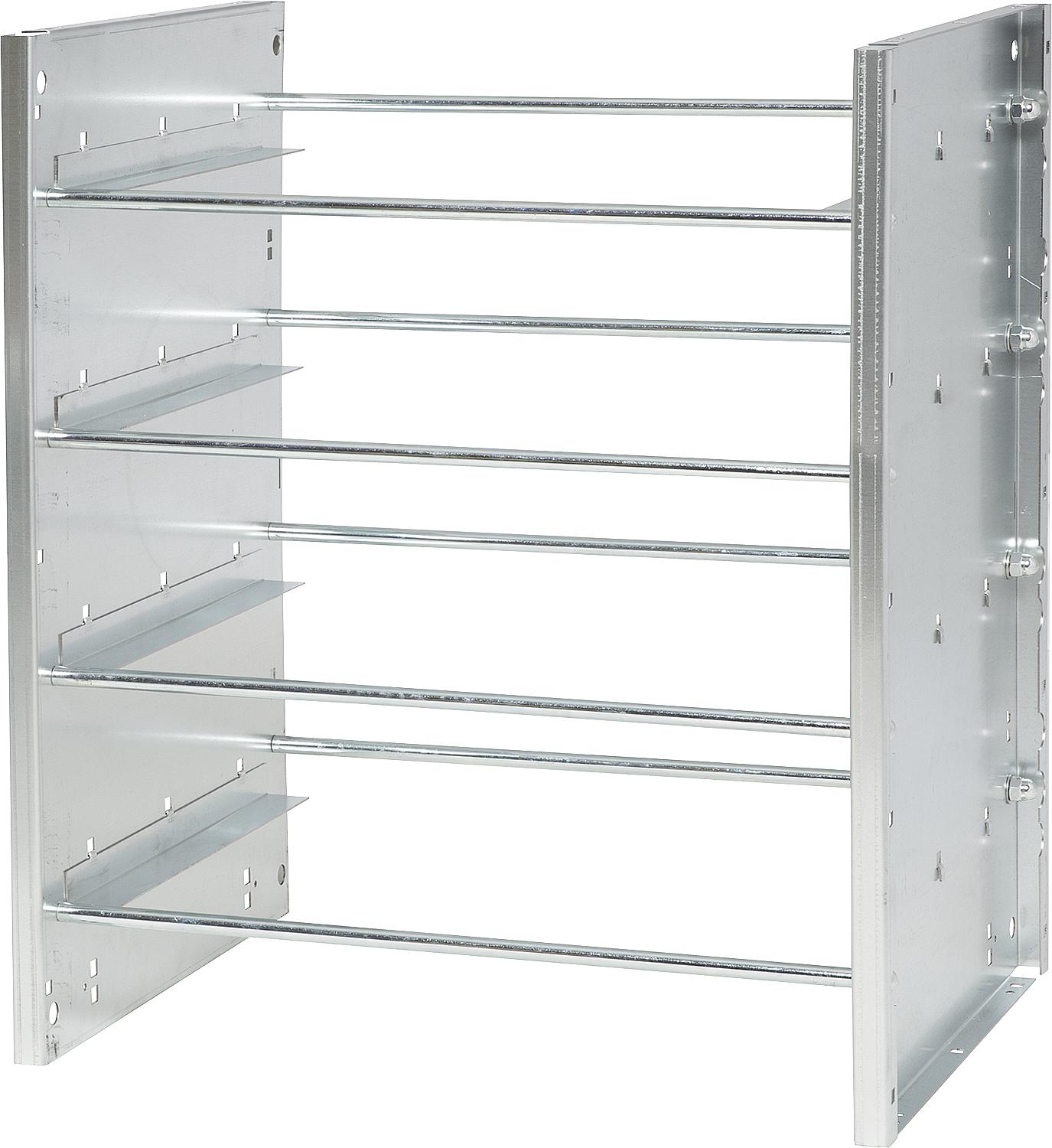 Medium-sized shelving system for fitting cases, 4-row, 2mm thick hot-dip galvanized steel sheet, 770 x 660 x 490mm