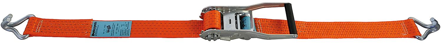 Lashing strap, two-piece DIN EN12195-2, long lever orange, webbing 50mm, length 10m