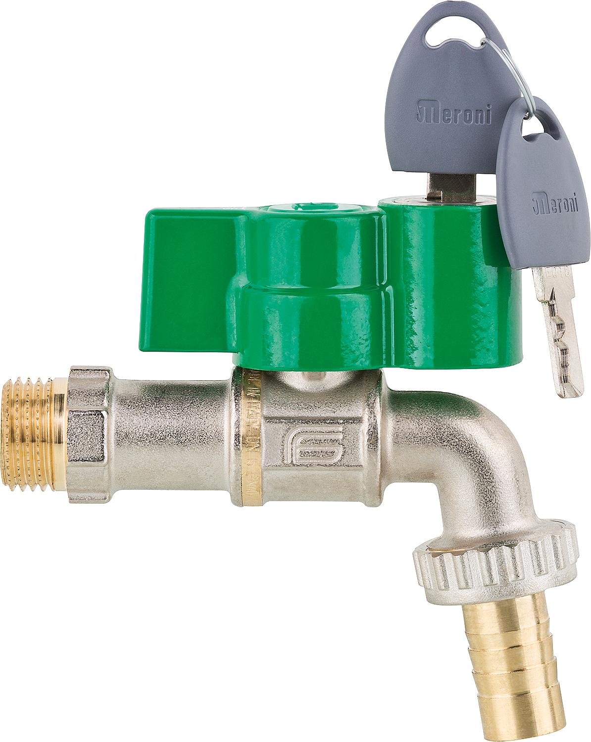 Vanne à bille de sortie Viva avec poignée à ailettes, verrouillable et à clé, en aluminium, PN40, DN15 1/2".