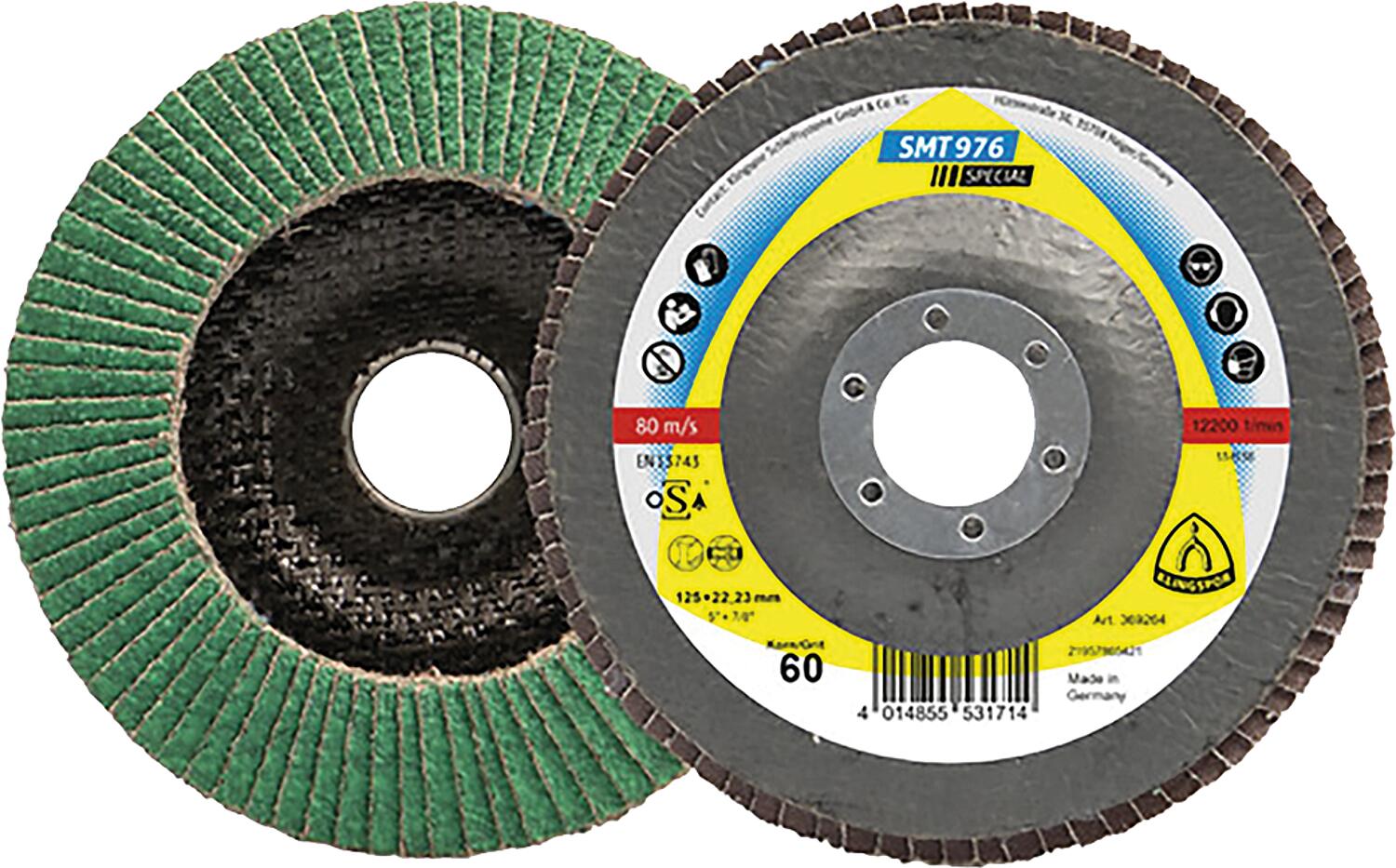 Disque de ponçage à lamelles KLINGSPOR SMT 976 SPECIAL CEVOLUTION 125 x 22,23 mm, grain 40, déporté