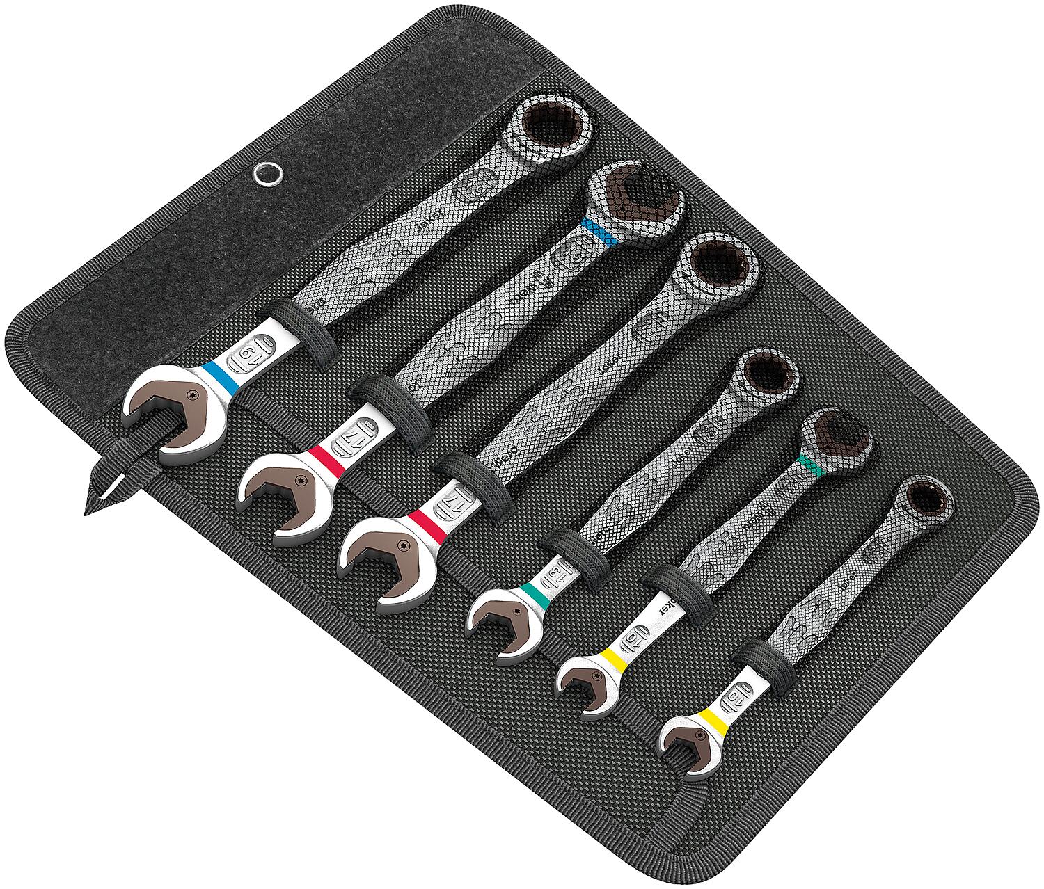 Jeu de 6 clés à cliquet Wera à fourche/à anneau, tailles 10x159 - 17x19x235, métrique, Joker
