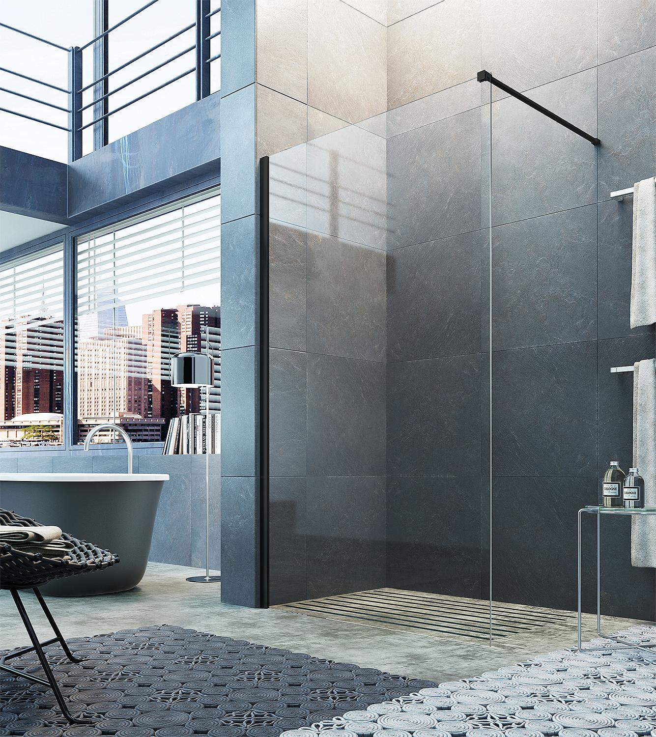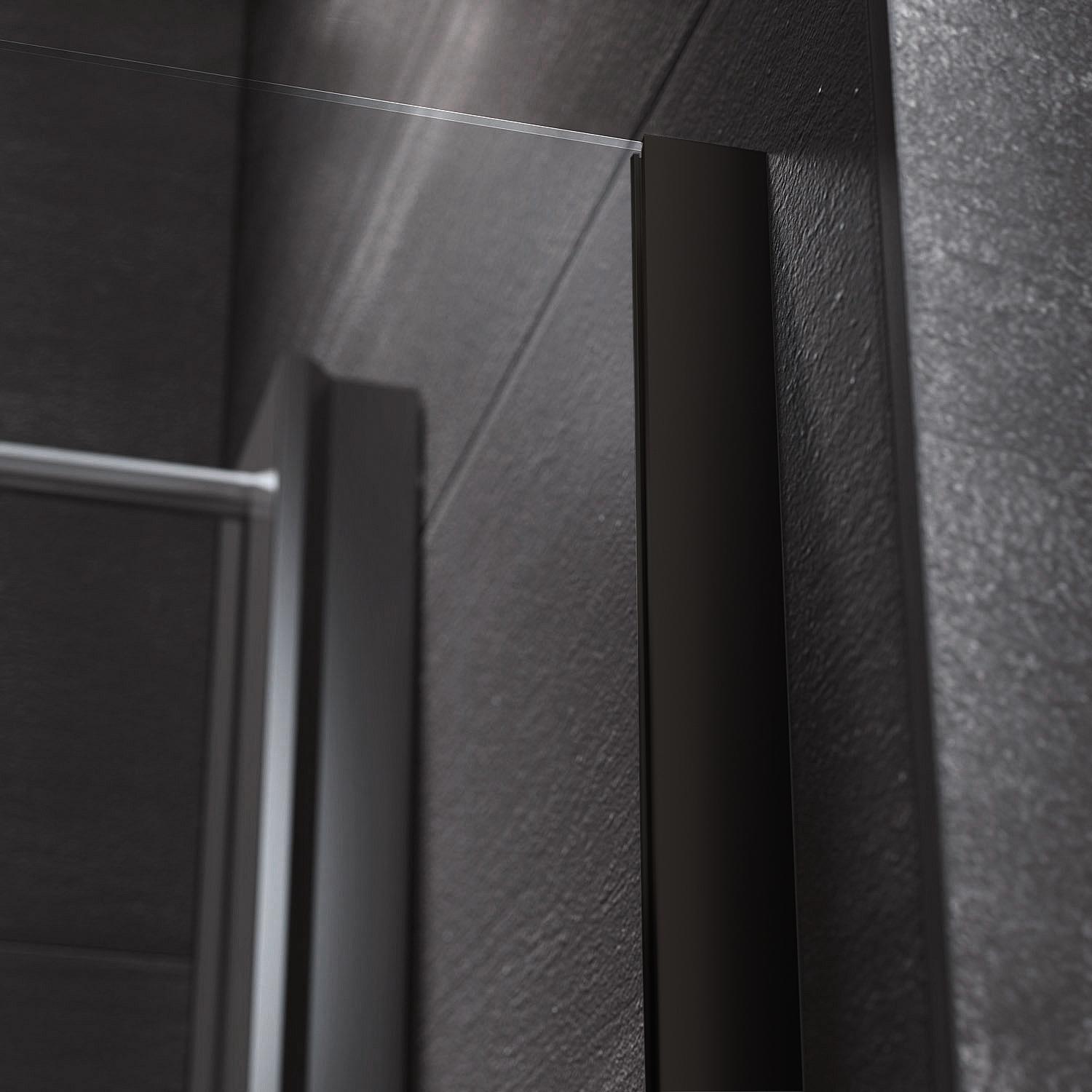 Cabine de douche à l'italienne en verre Liri Nero avec profilé mural et barre de stabilisation, carrée, noir mat, 1570 - 159,5 mm ETC