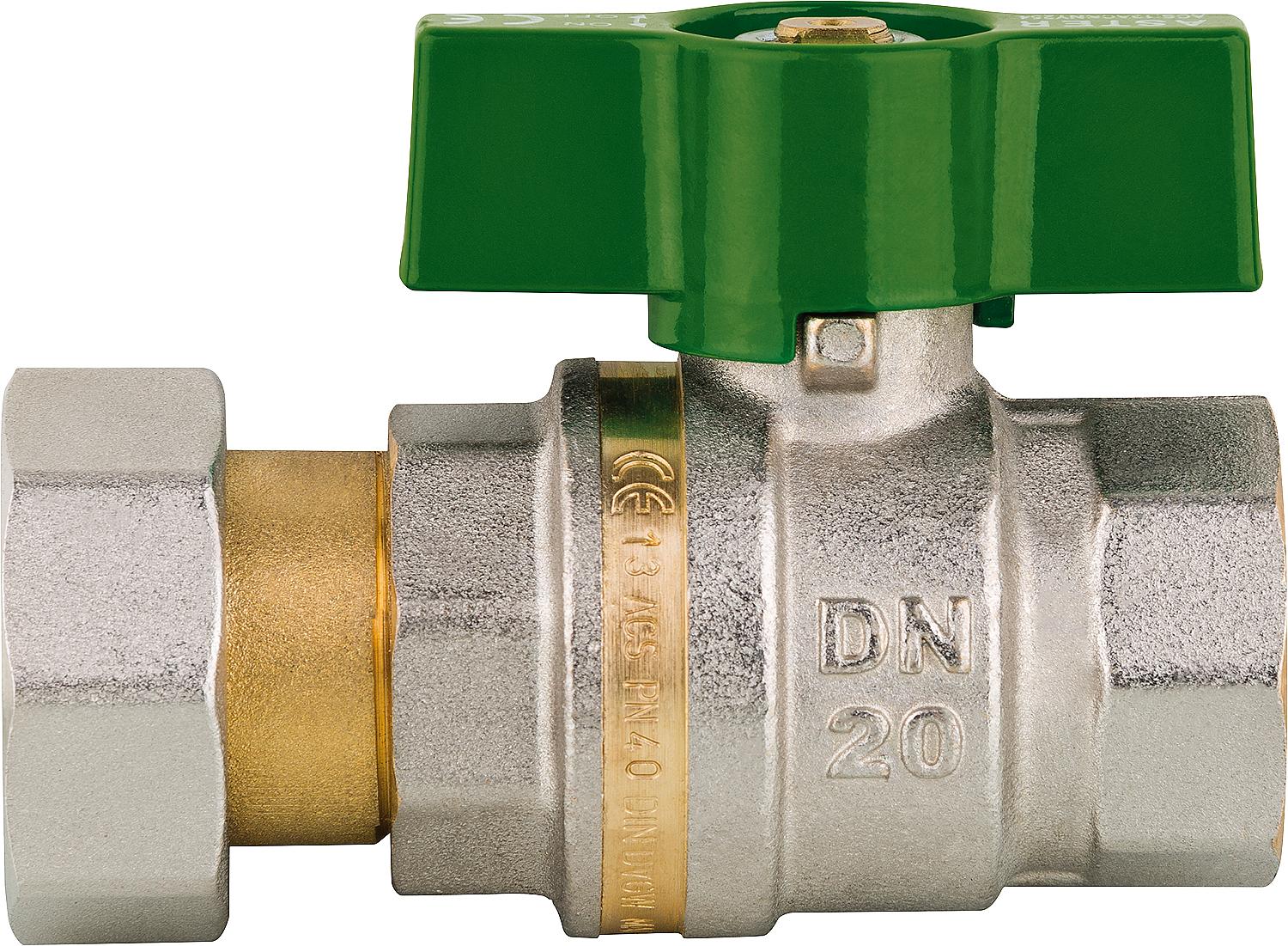 Messingkugelhahn, Aster ACS IG/ ÜW,DN20(3/4")xDN25(1") DVGW geprüft, Flügelgriff