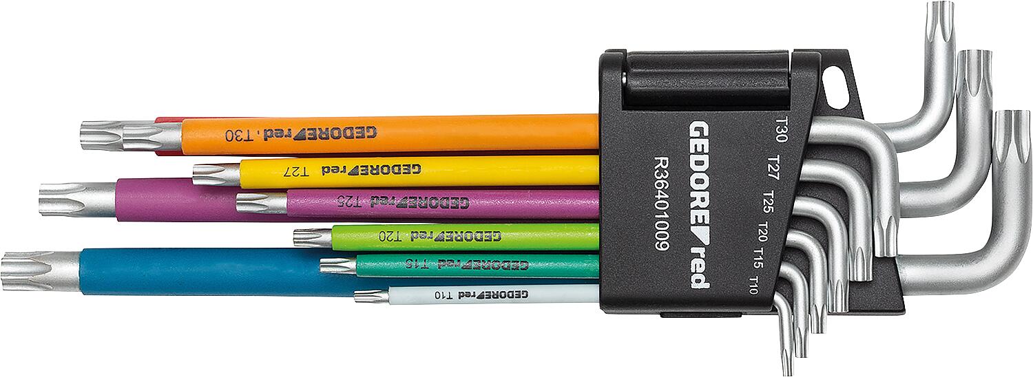 Winkelschlüsselsatz GEDORE red 9-teilig, farblich gekennzeichnet, Torx® T10 - T50